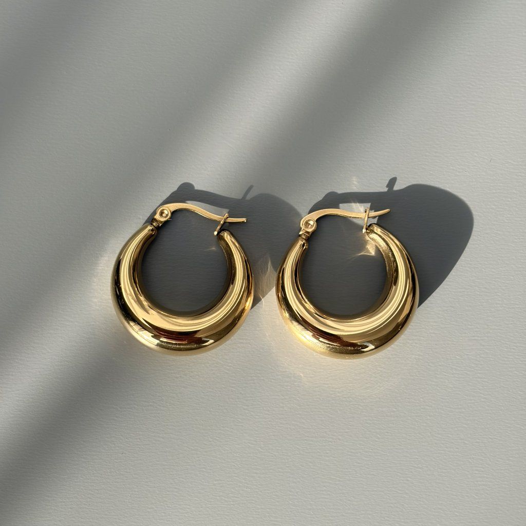 Minimalismus s charakterem. Tyto masivní „chunky“ kruhové náušnice jsou dokonalou kombinací jednoduchosti a sebevědomého stylu. Jejich hladký, zaoblený tvar krásně odráží světlo a dodává každému outfitu moderní šmrnc – ať už vyrážíte do práce, na večeři nebo jen chcete pozvednout běžný den.