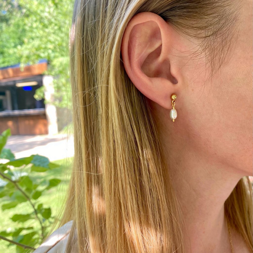 Minimalistické náušnice - pecky s přívěskem perličky nebo polodrahokamu.