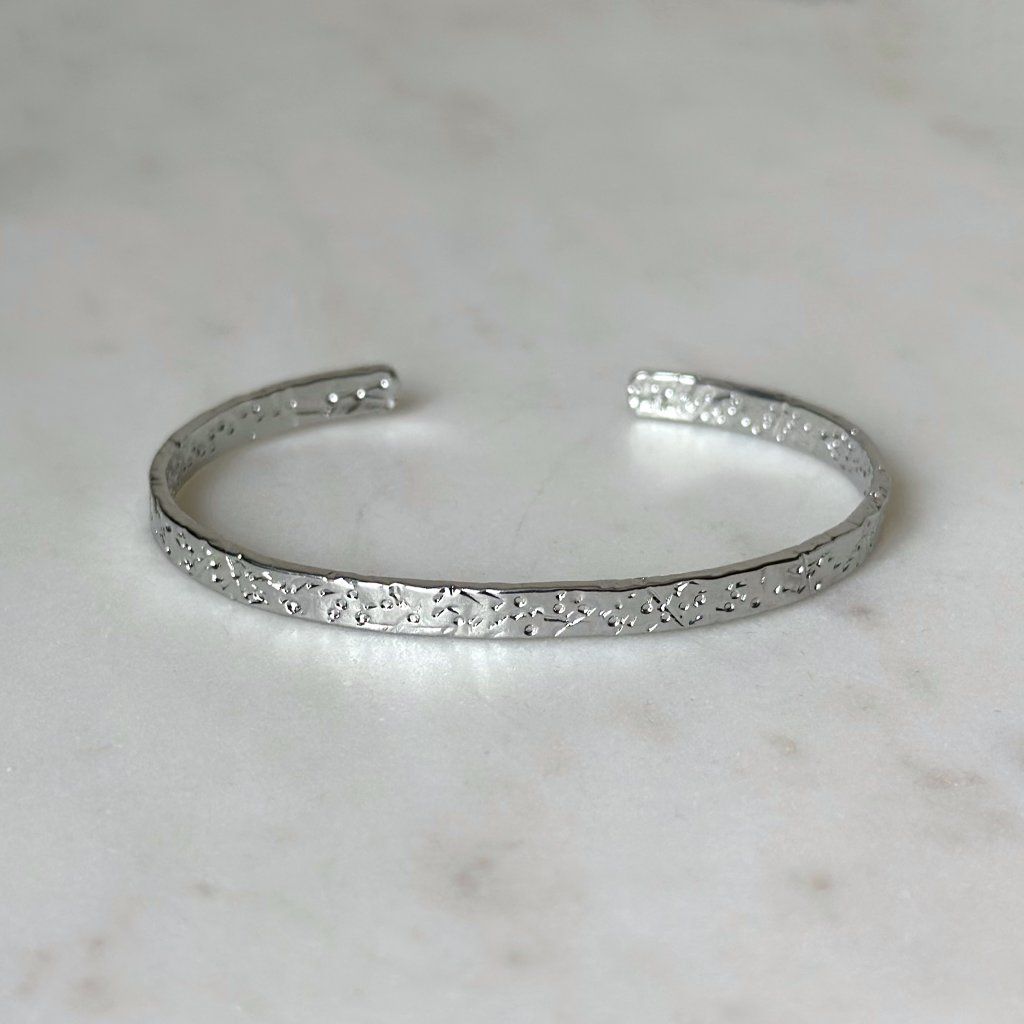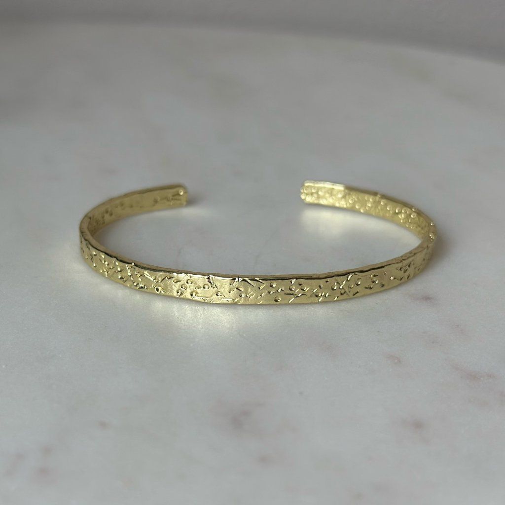 Minimalistický nadčasový náramek s reliéfním povrchem.