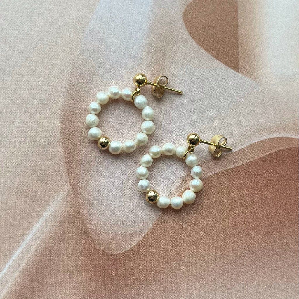 Náušničky s nápaditým designem zavěšených kruhů z perel představující oblíbený symbol karmy.