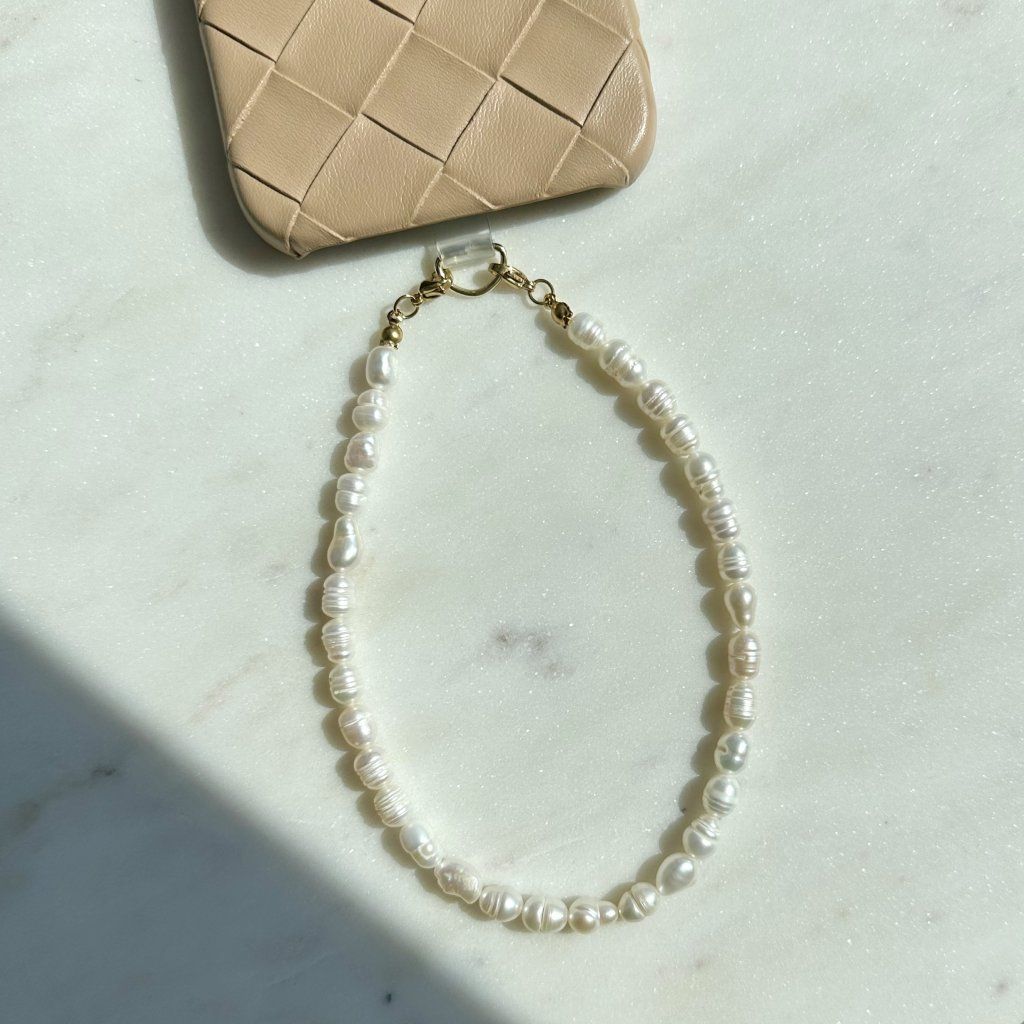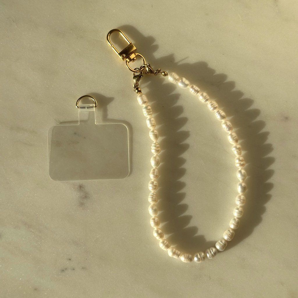 Dodejte svému outfitu šmrnc s tímto multifunkčním perlovým přívěskem, který kombinuje eleganci klasických perel s moderní praktičností. Tento stylový doplněk slouží nejen jako ozdoba na kabelku, ale také jako bezpečný a pohodlný úchyt na váš mobilní telefon.