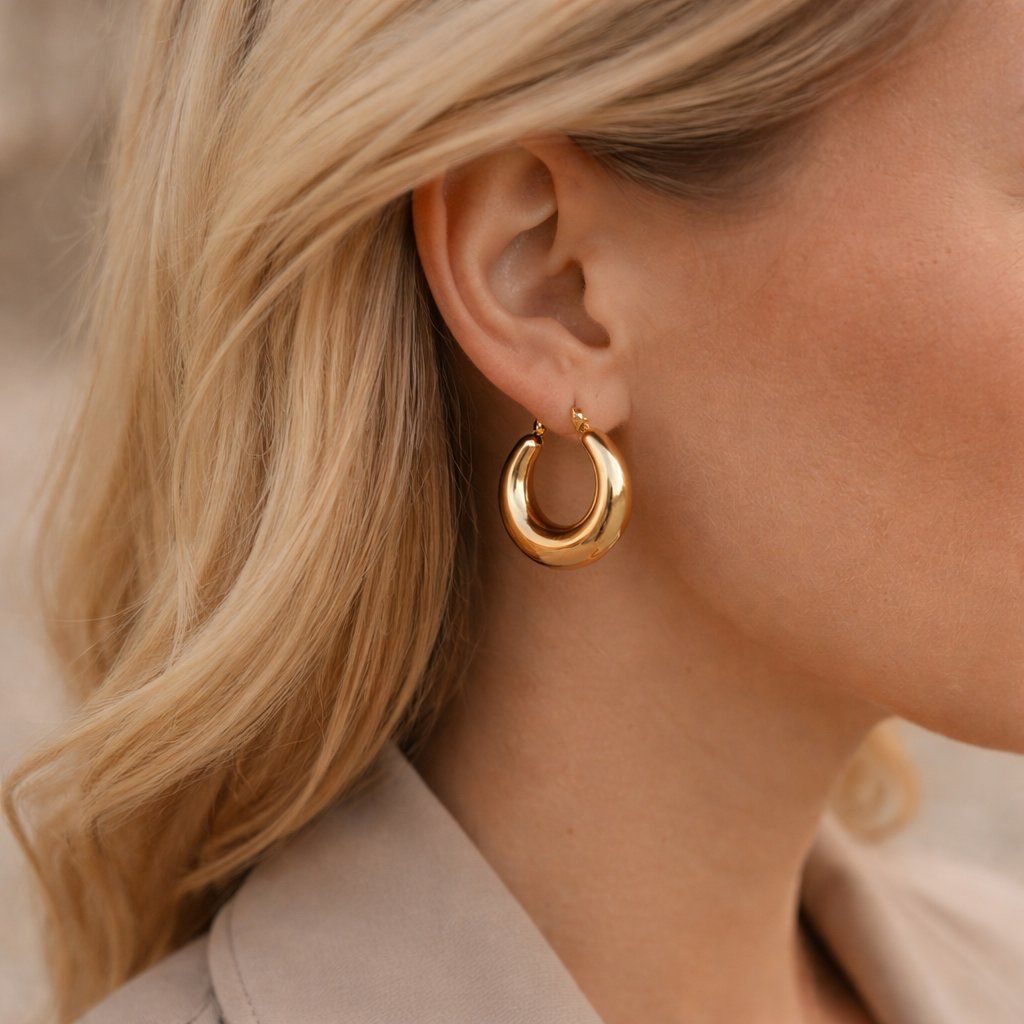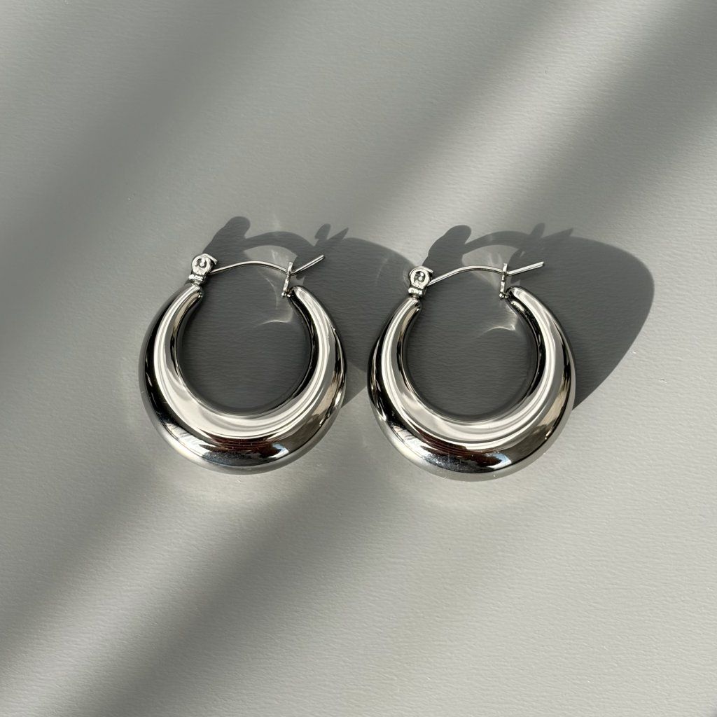 Minimalismus s charakterem. Tyto masivní „chunky“ kruhové náušnice jsou dokonalou kombinací jednoduchosti a sebevědomého stylu. Jejich hladký, zaoblený tvar krásně odráží světlo a dodává každému outfitu moderní šmrnc – ať už vyrážíte do práce, na večeři nebo jen chcete pozvednout běžný den.