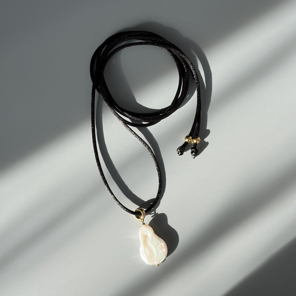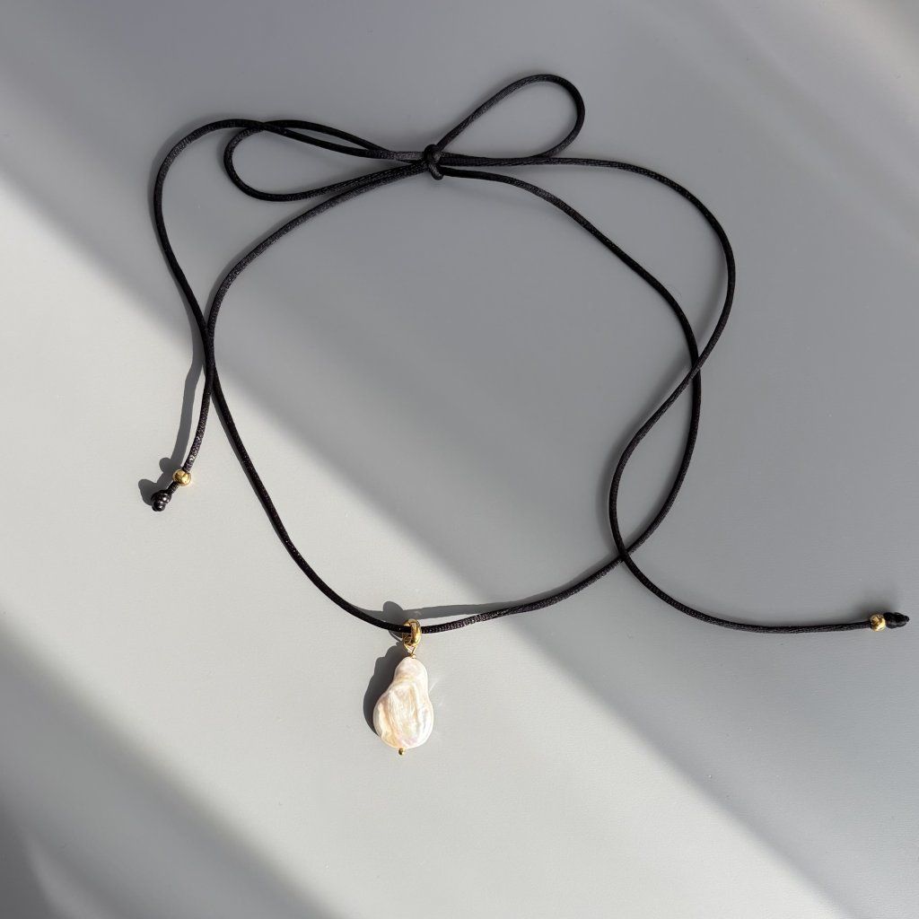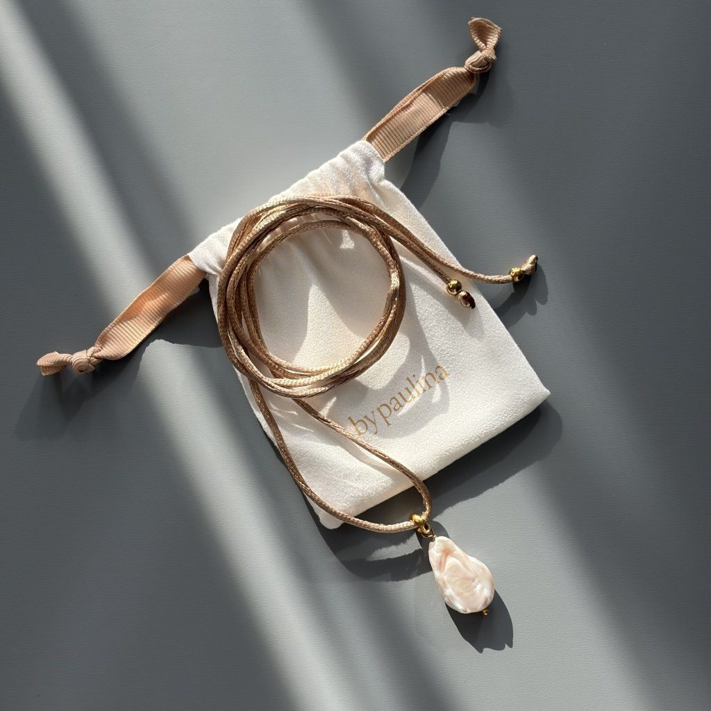Elegantní a variabilní šperk, který se přizpůsobí vašemu stylu i náladě. Tento náhrdelník zdobí unikátní barokní perla zavěšená na jemné saténové šňůrce o délce 120cm. Na koncích šnůrky jsou korálky ve zlaté nebo stříbrné barvě. Můžete jej nosit hned několika způsoby: