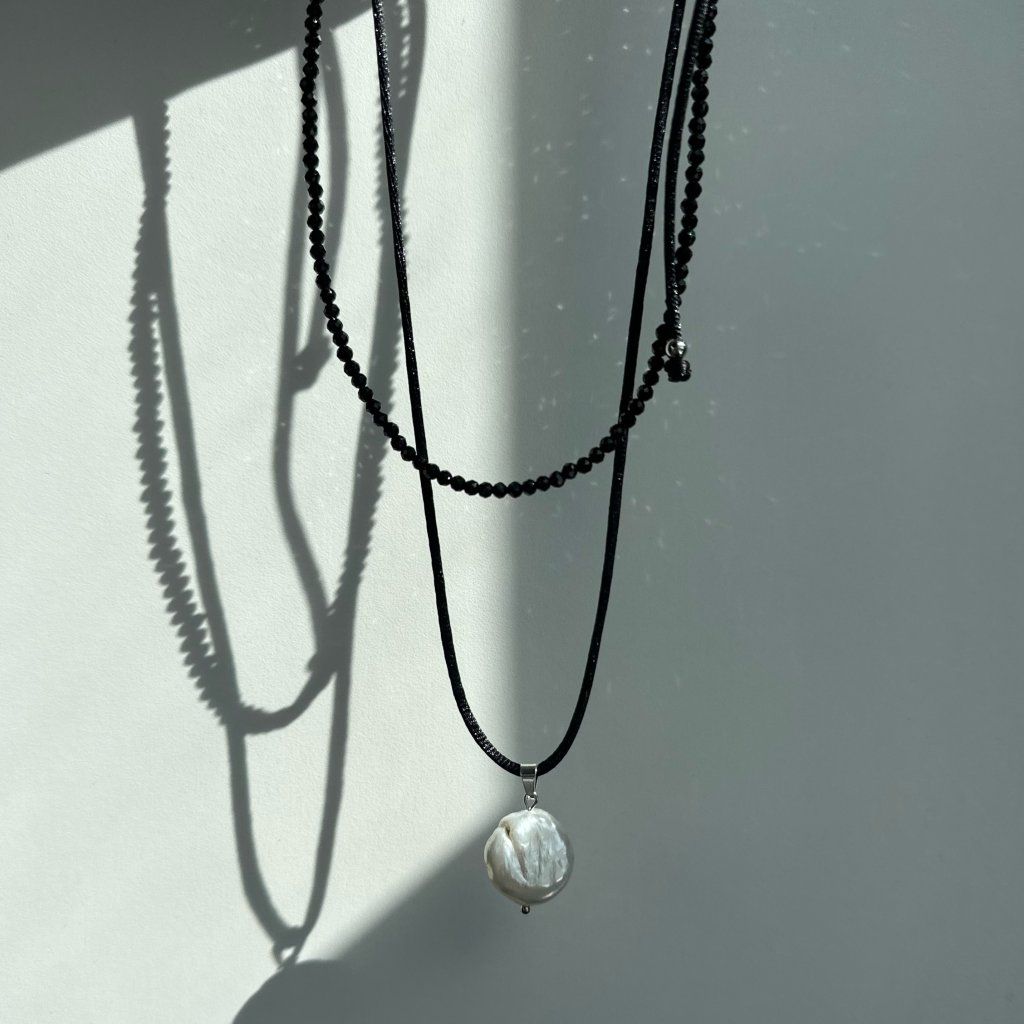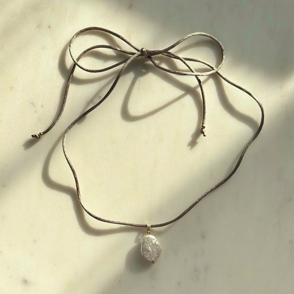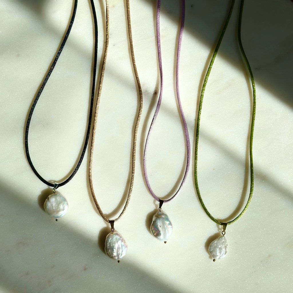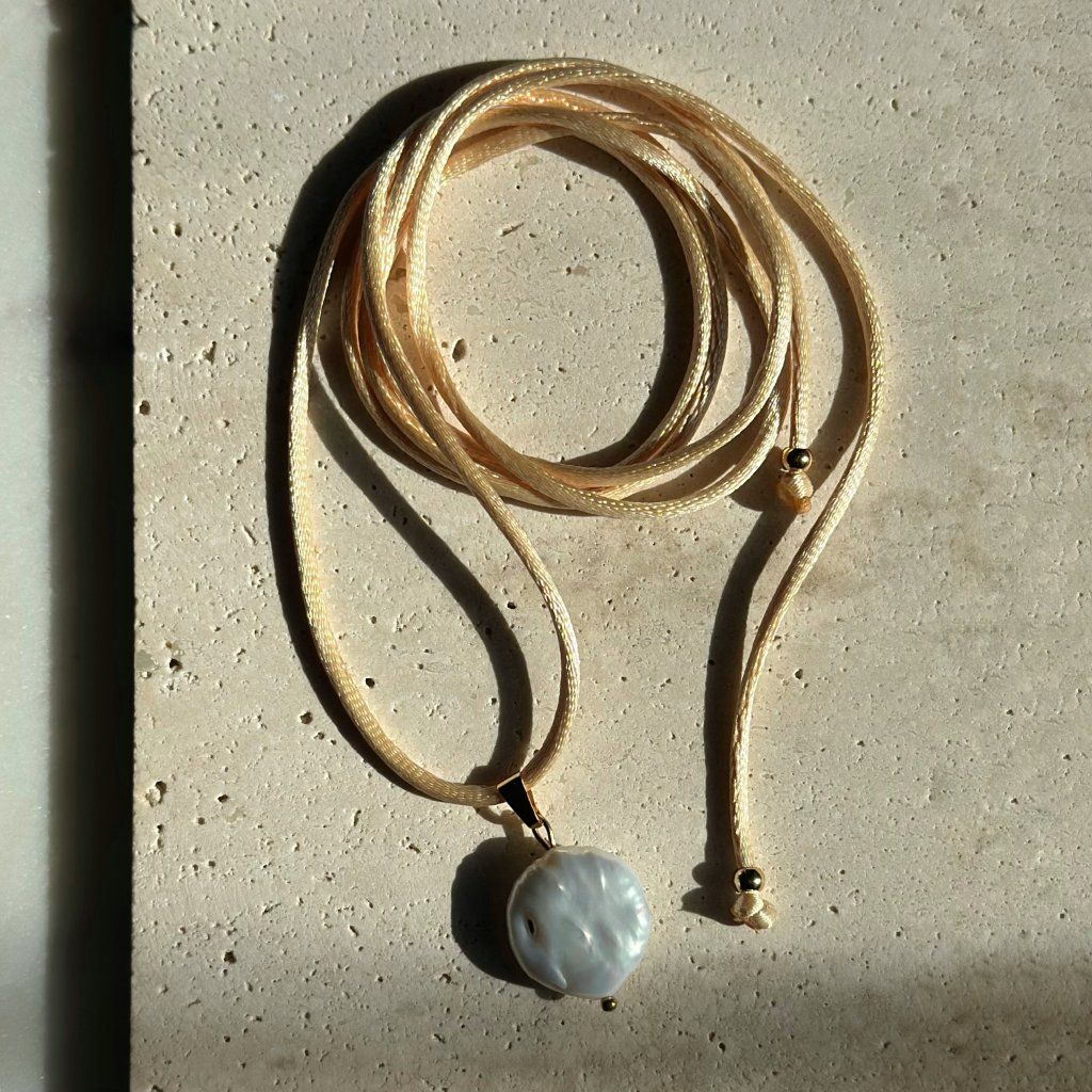 Elegantní a variabilní šperk, který se přizpůsobí vašemu stylu i náladě. Tento náhrdelník zdobí unikátní barokní perla zavěšená na jemné saténové šňůrce o délce 120cm. Na koncích šnůrky jsou korálky ve zlaté nebo stříbrné barvě. Můžete jej nosit hned několika způsoby: