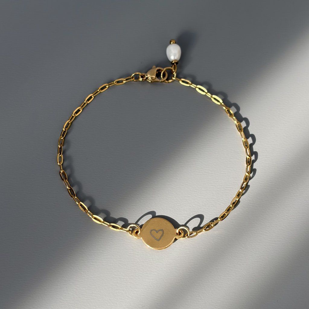 Tvůj příběh, zhmotněný ve šperku. Jemný náramek s ručně rytým medailonkem, do kterého si necháš zvěčnit slovo, datum nebo symbol s osobním významem. Možnost gravírování z obou stran dává prostor tvému příběhu ještě víc do hloubky. Elegantní paper clip řetízek podtrhuje jeho lehkost a nadčasovost. Jemný detail říční perličky u zapínání můžeš na přání vyměnit za minerální kamínek, stačí jej uvést do poznámky k objednávce. Jeden šperk. Osobní. Nadčasový. Tvůj.