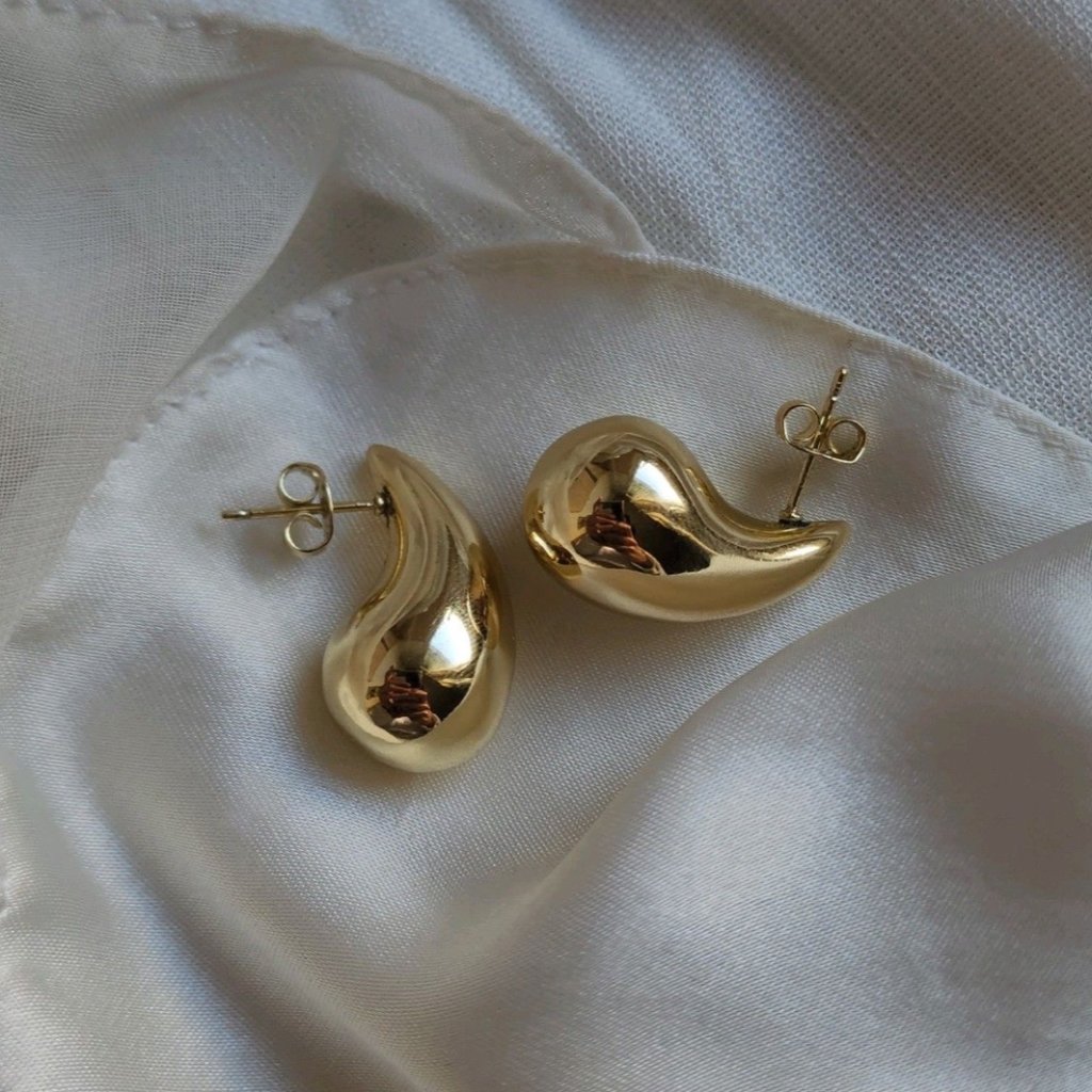 Elegantní, moderní a zároveň nadčasové. Tyto teardrop náušnice zaujmou svým organickým tvarem inspirovaným kapkou vody. Díky svému jemnému lesku dodají vašemu outfitu luxusní nádech – ať už sáhnete po zlatém nebo stříbrném provedení.