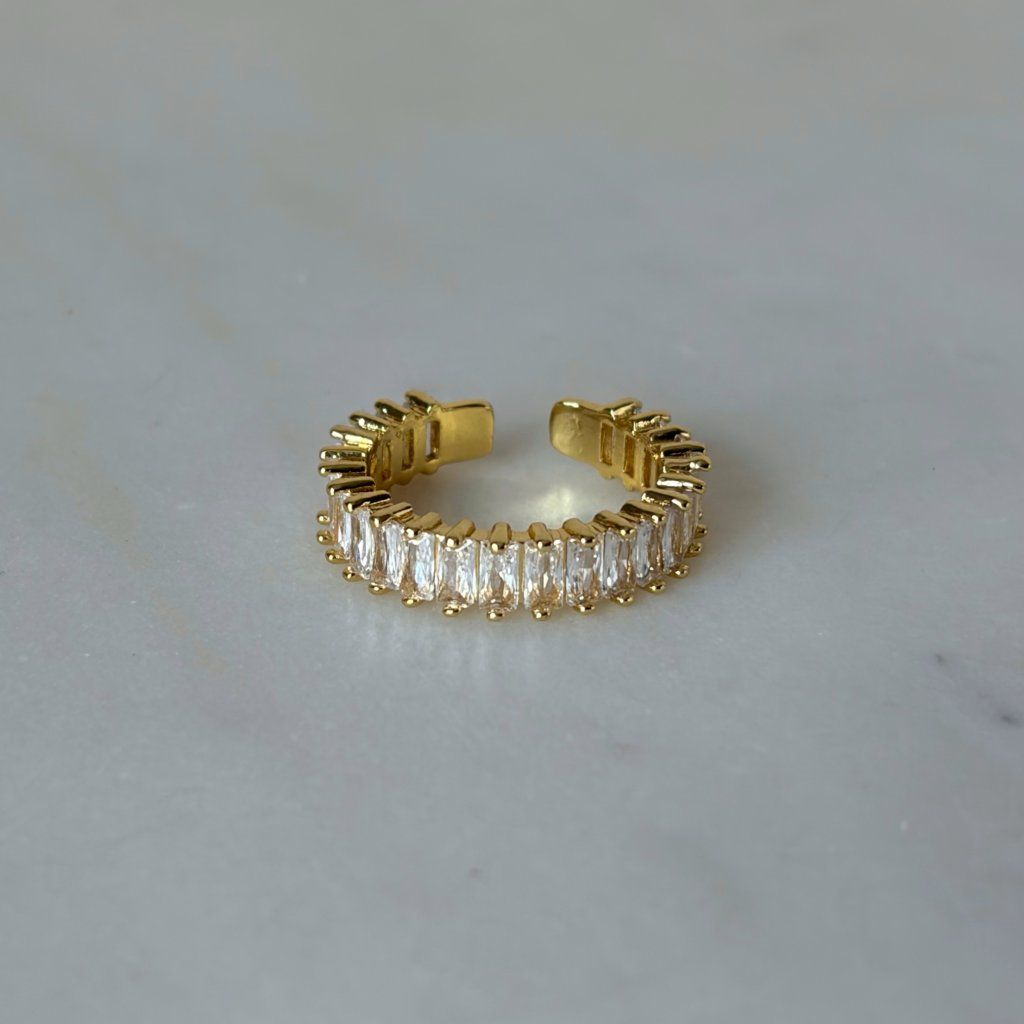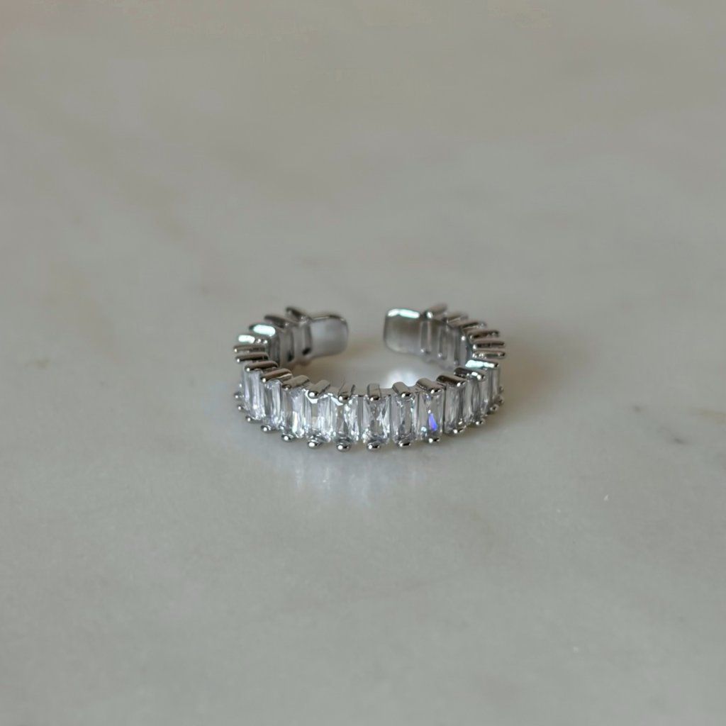 Elegantní open ring se zirkony je ztělesněním moderní elegance a jemného luxusu. Navržen je v otevřeném stylu, velikost si tak můžete upravit dle potřeby.