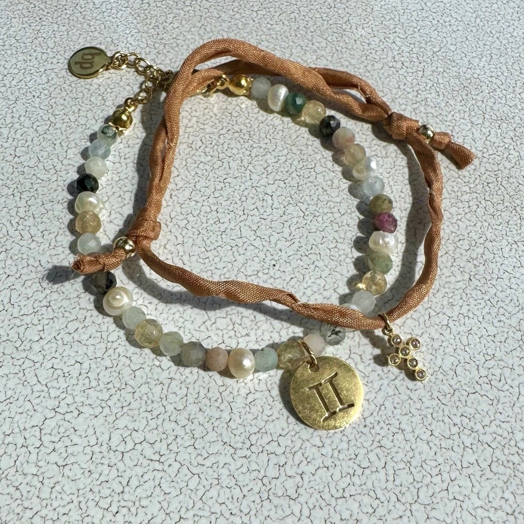 Polodrahokamy tvoří duhový efekt, vybíráme je podle zvoleného znamení zvěrokruhu. Každý náramek obsahuje 4-5 kamenů odpovídajících znamení.